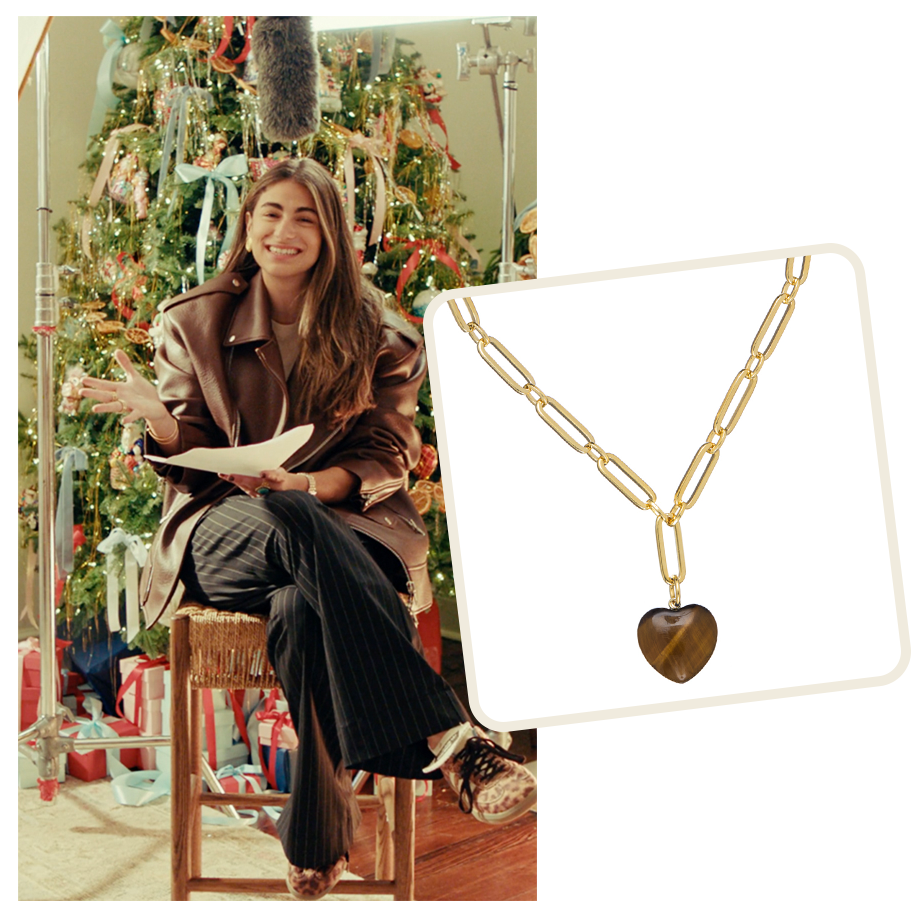 "The ultimate chunky necklace, perfect for building your loved one's stack! I love gifting the Monroe Heart Necklace because it is perfect to compliment your mixed chain necklaces while also being an eye-catching statement on its own. I love the marbled mystique of the Tiger's Eye pendant, too, to add even more texture to my look. " - Annie, Art Director