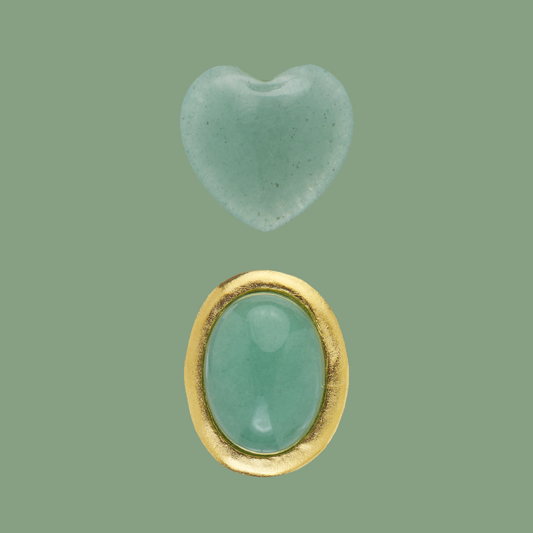 This soft, milky-green stone is the perfect way to fold in a more subdued pop of color. For fall, we love it in our Caroline Cabochon collection.
