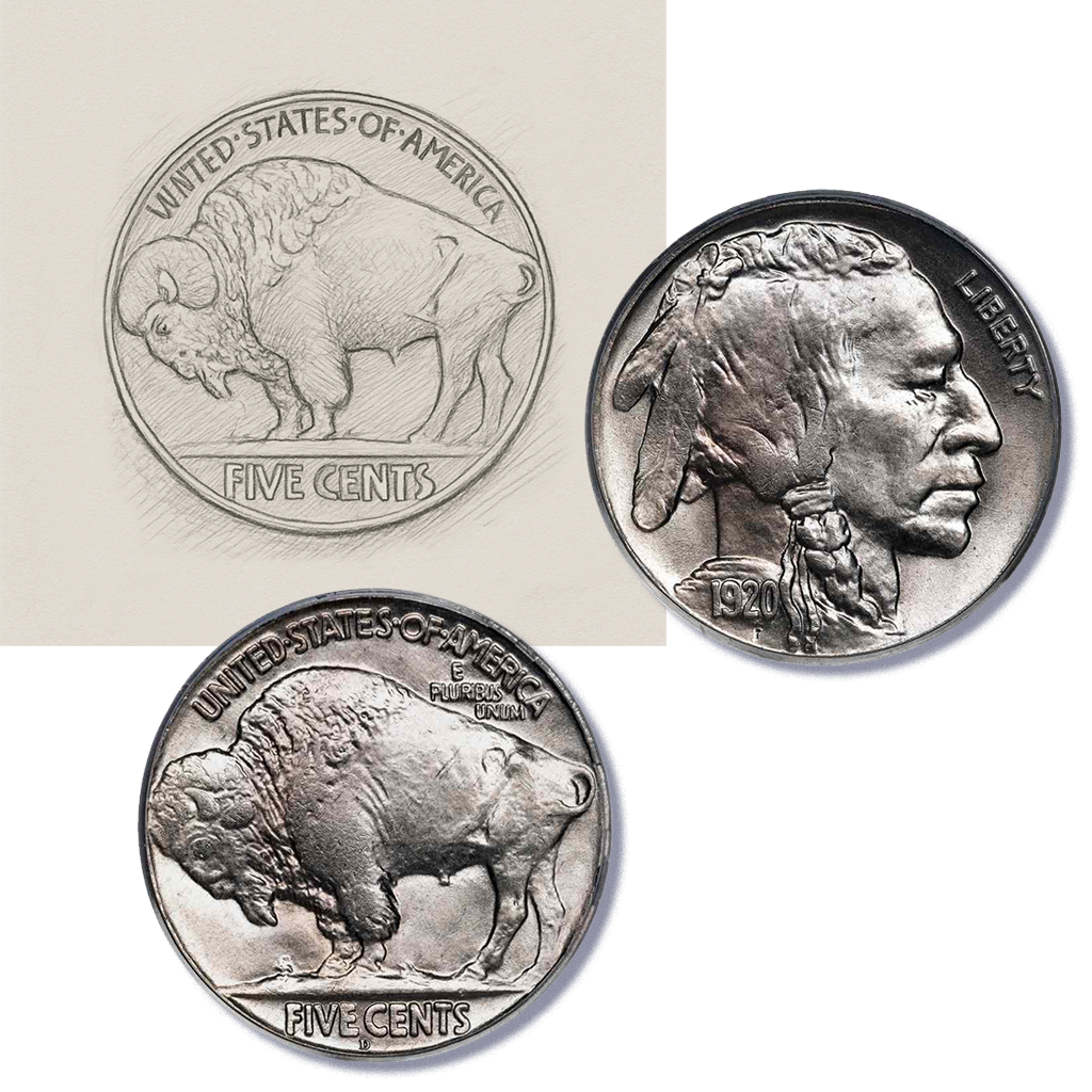 Looking to be a part of a campaign to beautify American coinage, Fraser approached the U.S. Mint with his design, and it entered production in 1913. One side of the coin features the American bison, more commonly known as a buffalo, and the reverse features the right side profile of a Native American. While the coin was a huge hit amongst the American public, it wasn’t quite as popular within the U.S. Mint: the design was prone to excessive wear and was difficult to reproduce. After its minimum 25-year production period expired, it was replaced by the Jefferson Nickel.