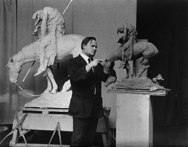 Born in 1876, James Earle Fraser grew up in the territory of South Dakota, which wasn’t officially a state until 1889. A frontiersman in his own right, Fraser’s early life in the American West shaped his artistic style in obvious ways. As a young adult, he attended art school in Paris and refined his style as a sculptor.