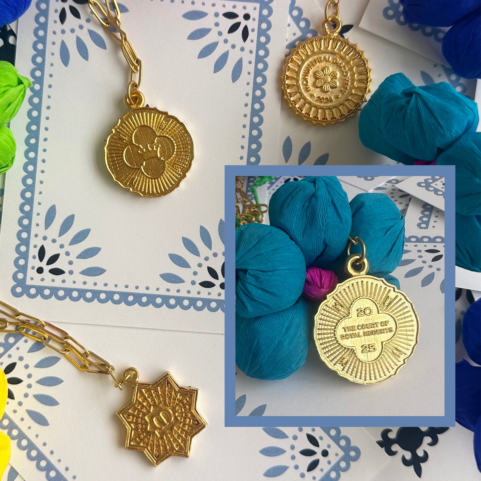 During Fiesta, a variety of royalty from various local organizations are crowned each year, including King Antonio, El Rey Feo, and the Queen of the Order of the Alamo. For the last three years, we have had the privilege of designing custom pendants to celebrate the Order of the Alamo’s annual royal court, including the Court of the Magic of Morocco, the Court of Monumental Discovery, and the Court of Royal Regents.
