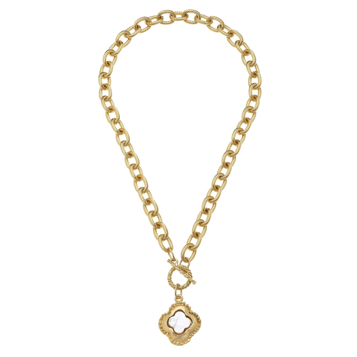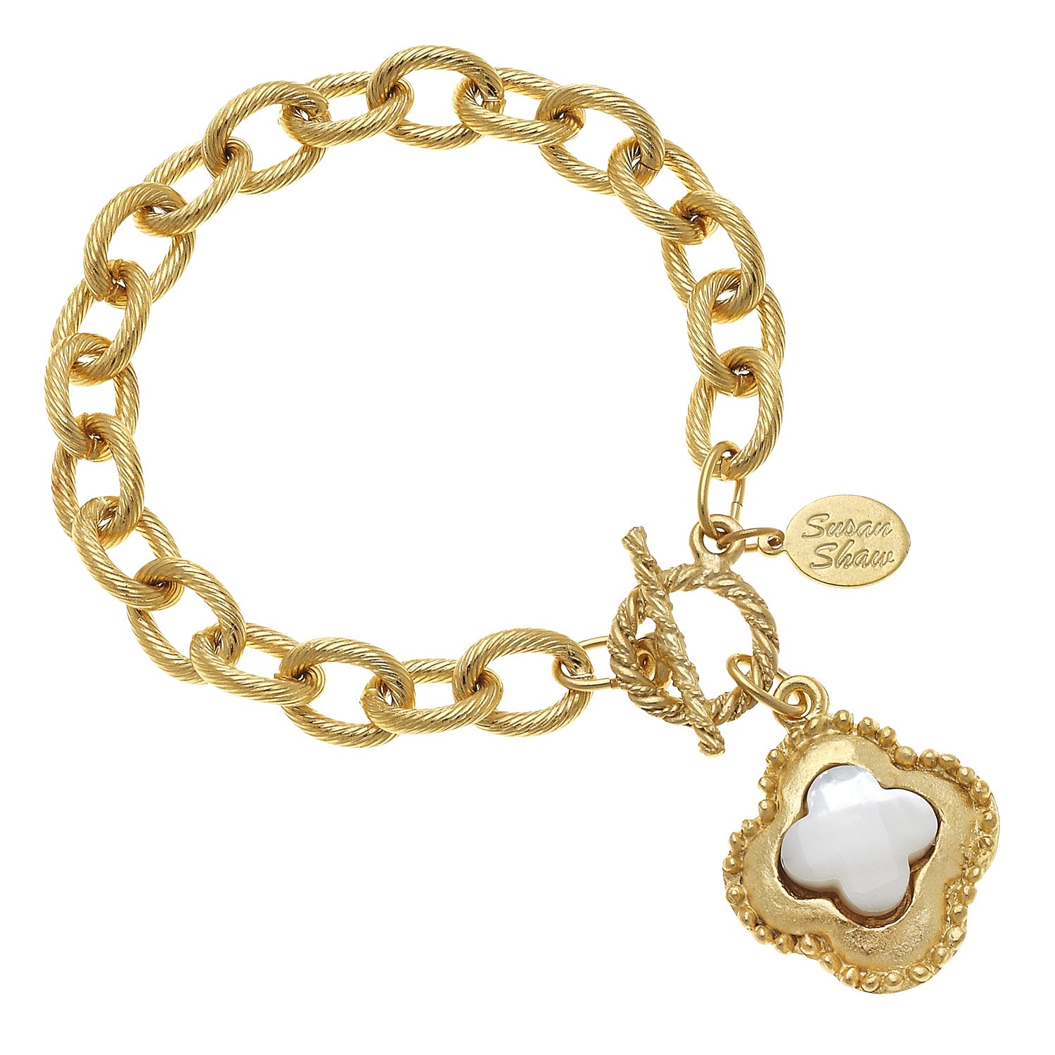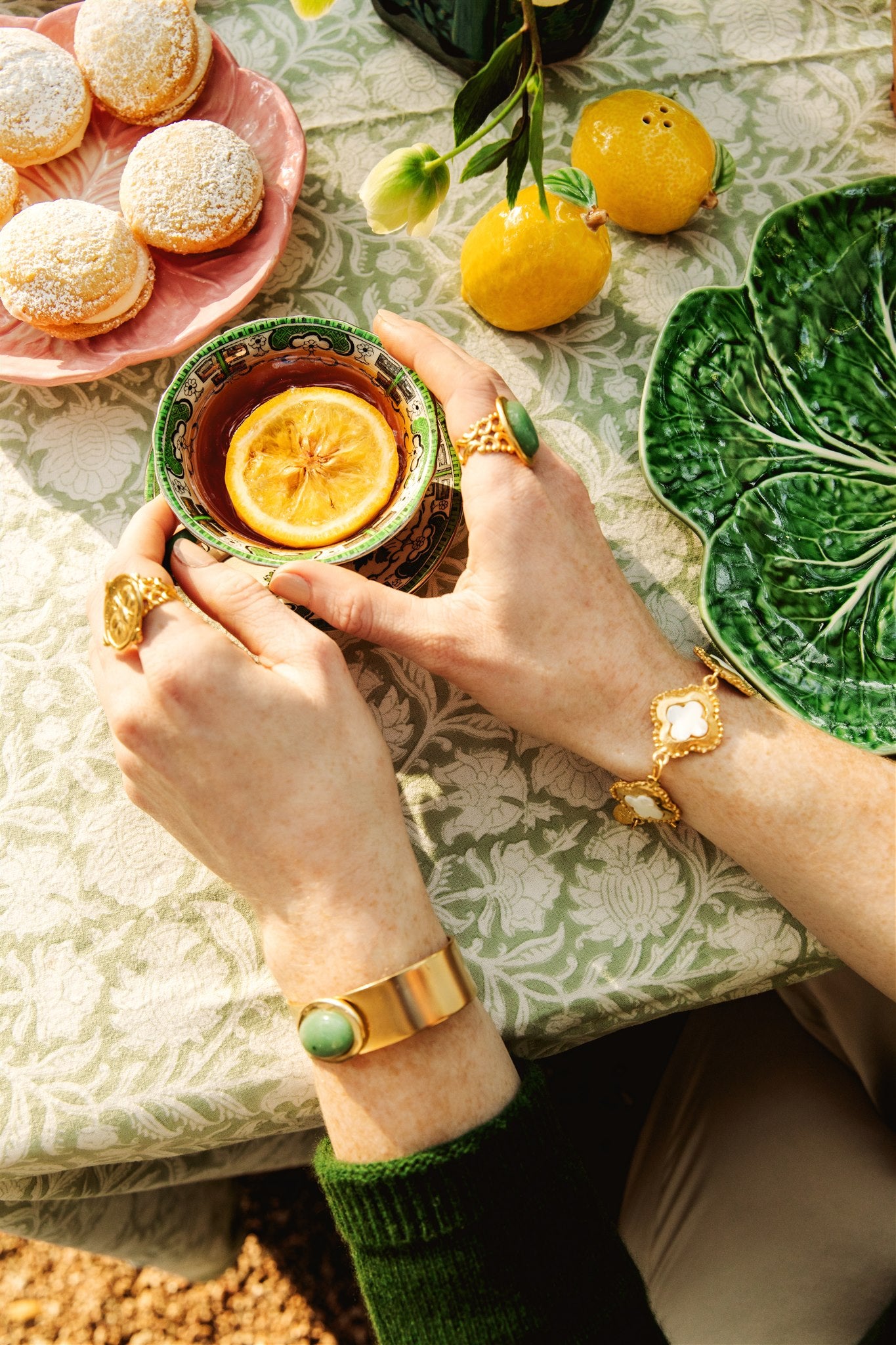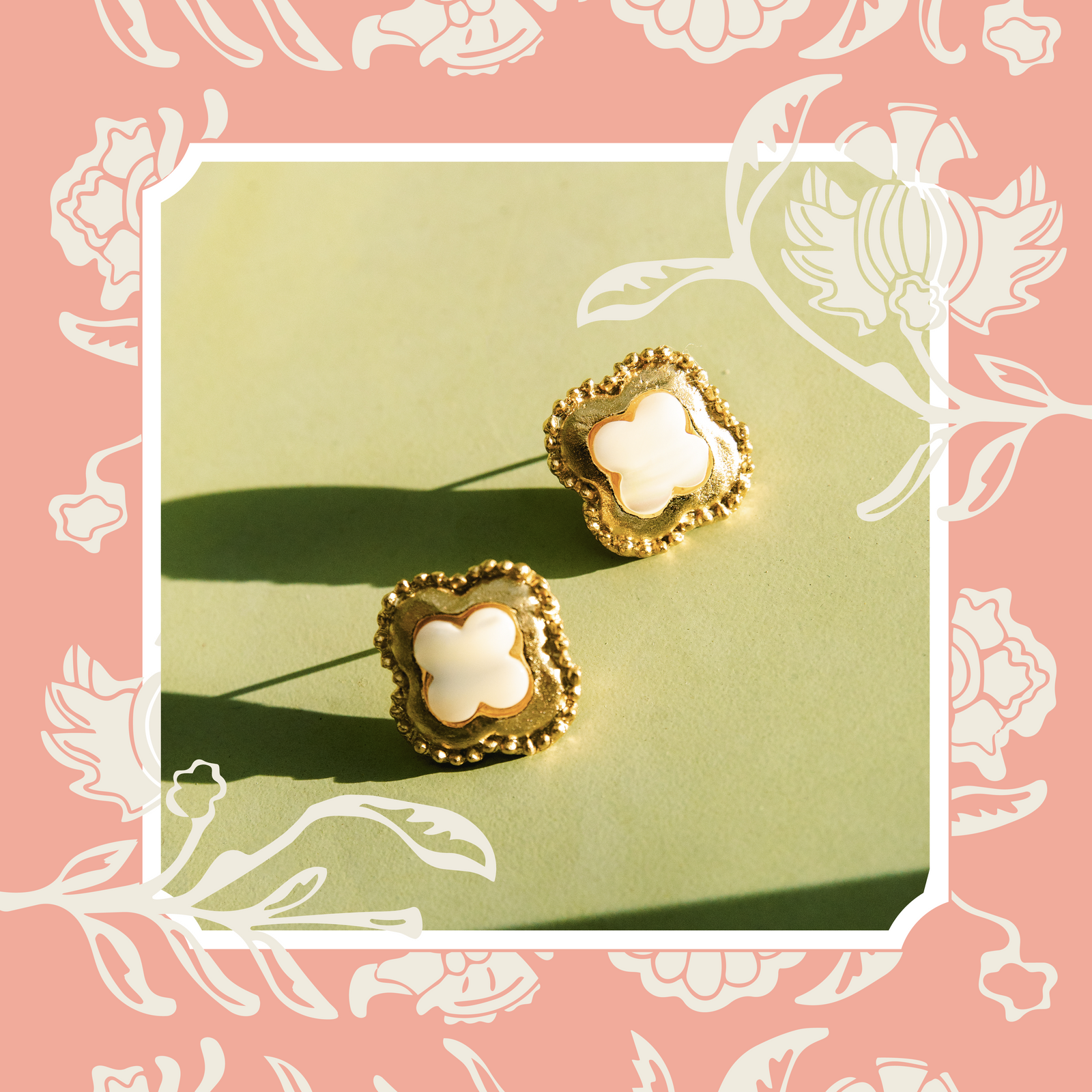 Meet your new lucky charm. Crafted in 24K triple-plated gold and carefully inlaid with a Mother of Pearl clover, these new styles catch the light at every turn.