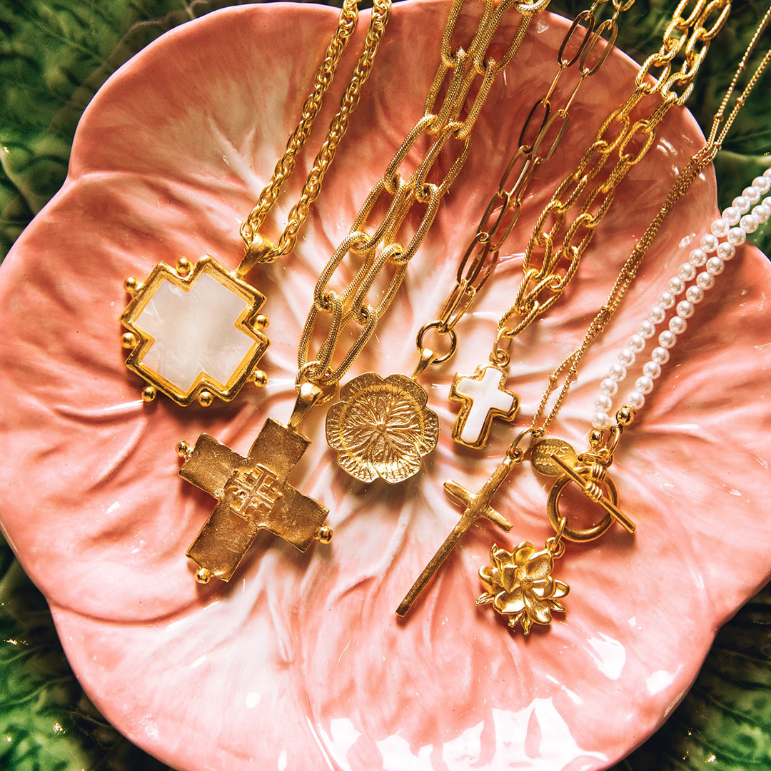 Timeless meaning meets modern design with our newest cross styles. Available in our classic 24K triple-plated gold or with an iridescent Mother of Pearl inlay, these will soon become an everyday favorite in your jewelry box.