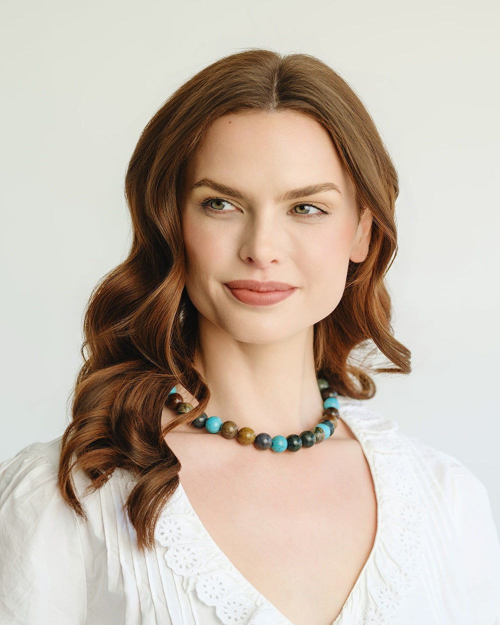 These big, bold beads are available in 8 genuine stone hues that speak for themselves. From marbled Garden Jasper to soft Green Jade, it’s the kind of necklace that transforms even the simplest outfit into something memorable.