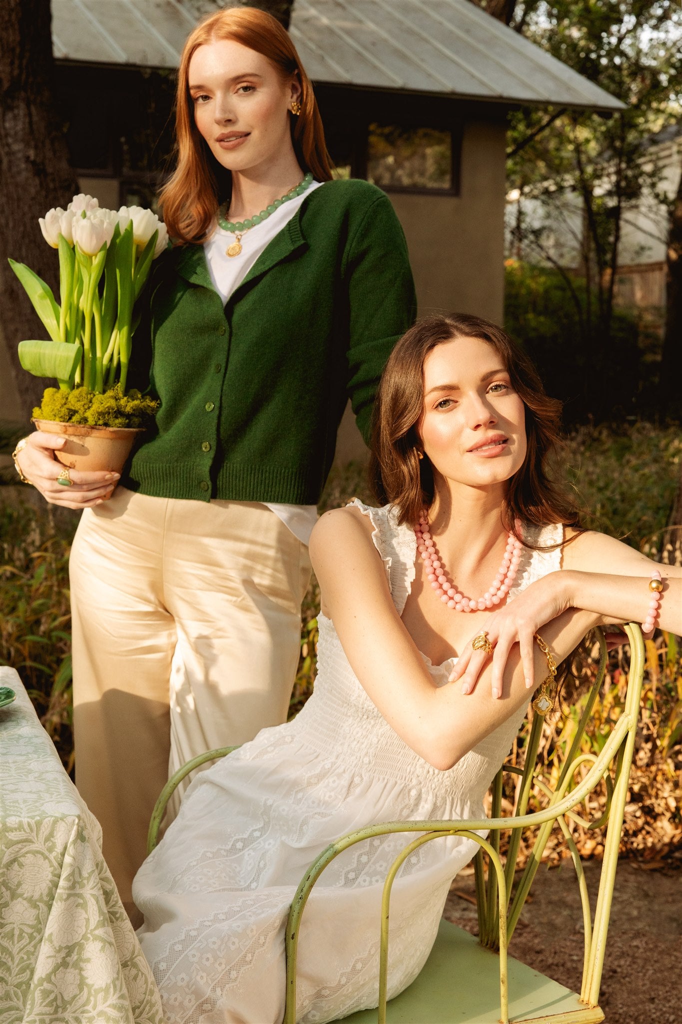 For a soft touch of color, look no further than our Jade Double Strand Necklaces, available in 3 spring-ready pastel hues. The layered silhouette feels both polished and effortless.