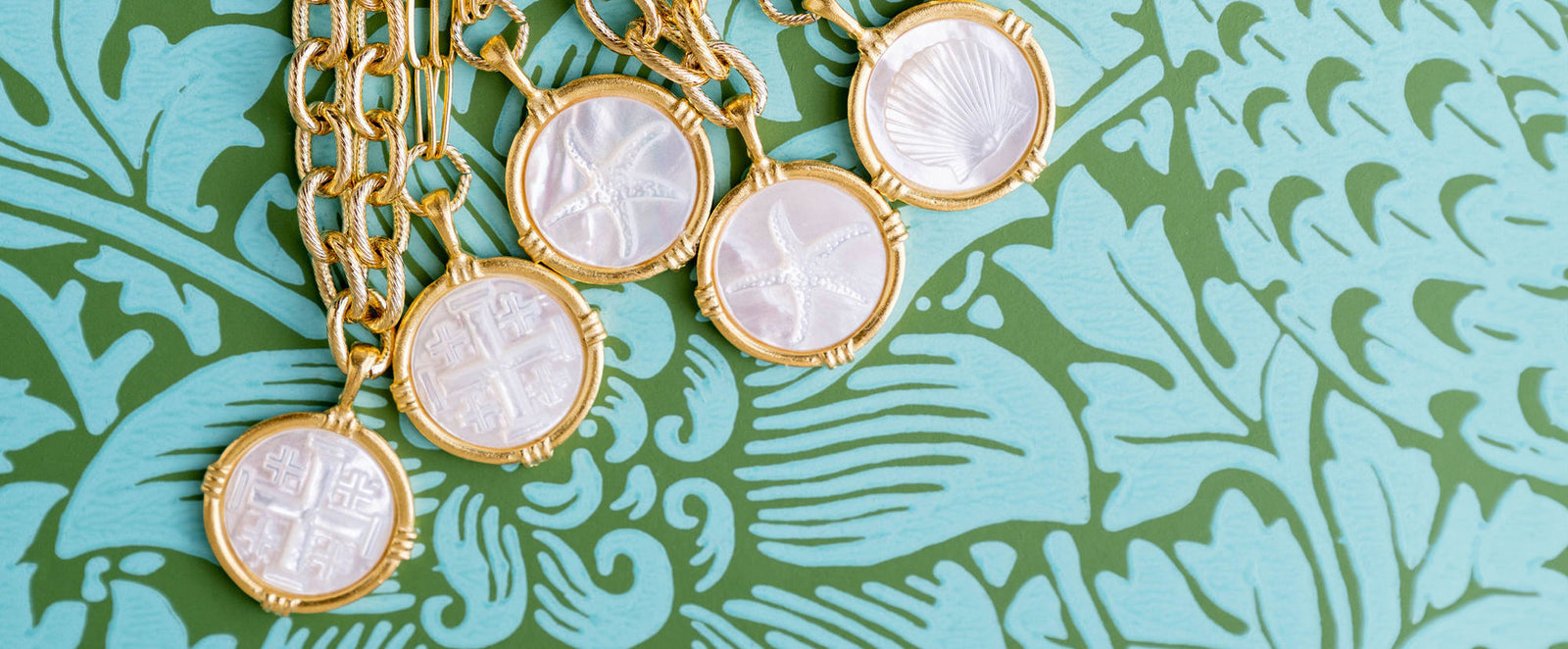 Our glistening, genuine Mother of Pearl jewelry is beloved for its easy-to-style, year-round appeal. We've added a charming twist to this mesmerizing material with the addition of carefully engraved motifs. Choose your favorite: the playful starfish represents rebirth and protection, the timeless Jerusalem cross carries biblical significance, the elegant bee symbolizes dedication, and the classic seashell adds a touch of coastal glamour.