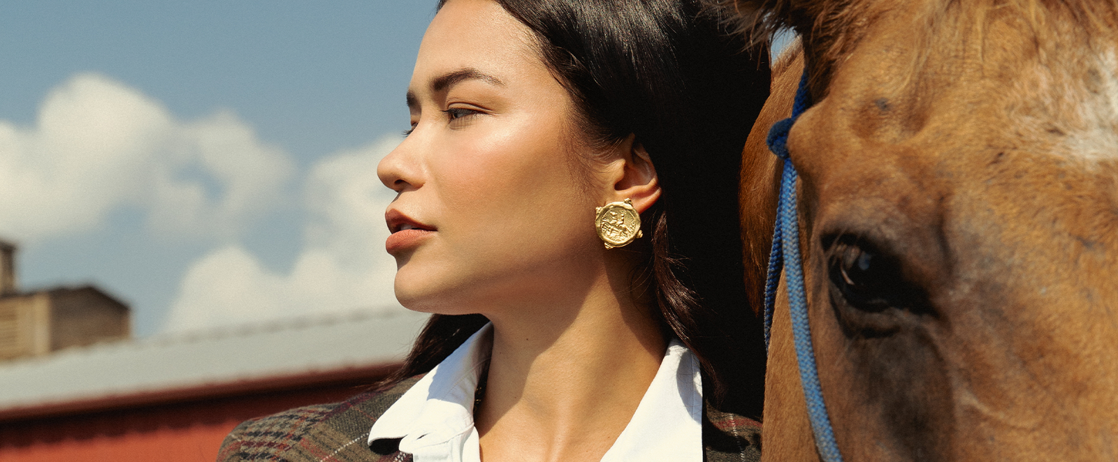There's something about the tailored, traditional aesthetic of the equestrian that inspires design spanning both fashion and home decor. Our own Equestrian Collection, that features both horses and their hardware, is a longtime favorite and Susan Shaw classic.
