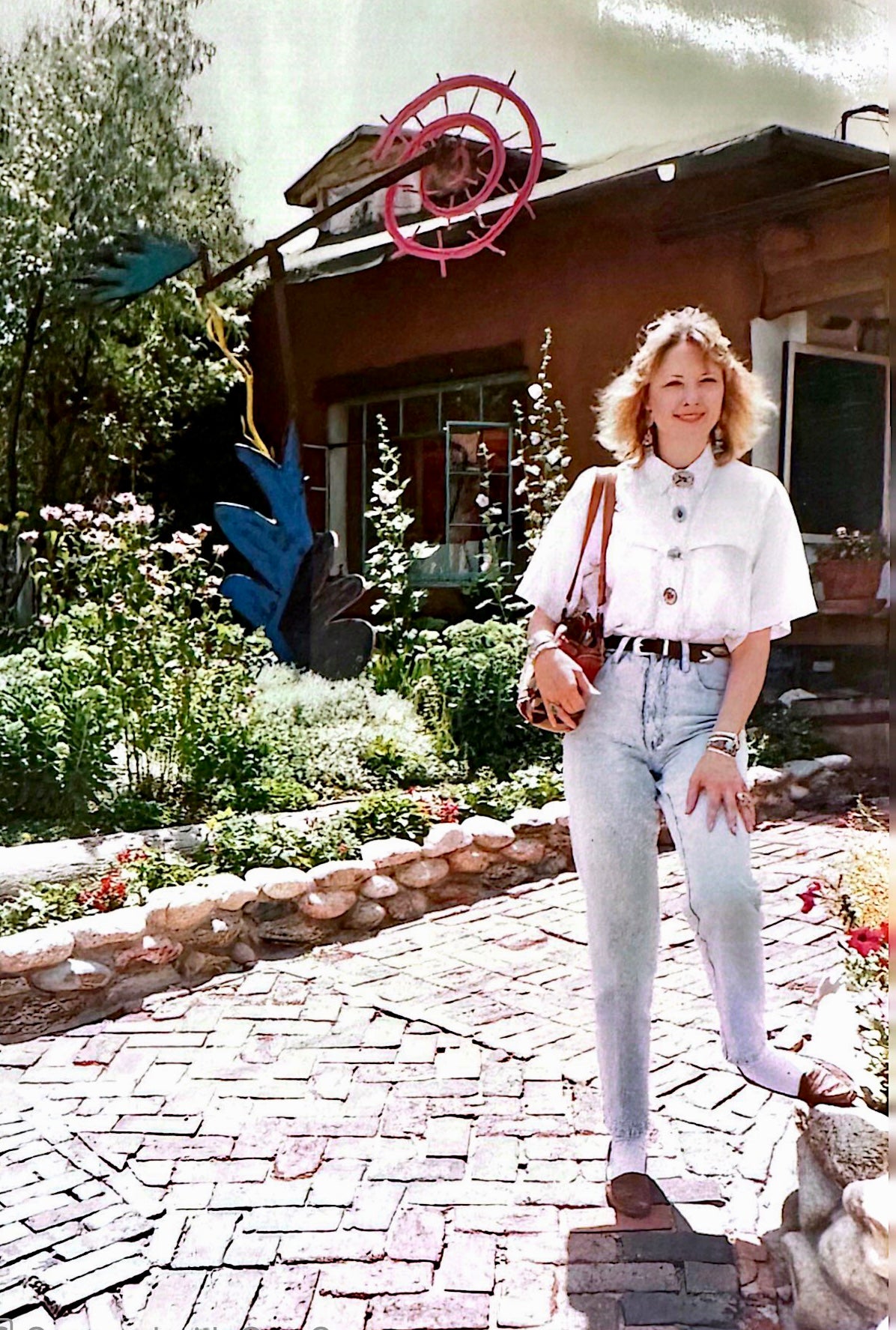 Santa Fe, 1984. Susan’s jewelry designs of the early years were very influenced by Southwestern fashion. Her most popular pieces of the mid-80s were button covers - you can see her wearing them here!