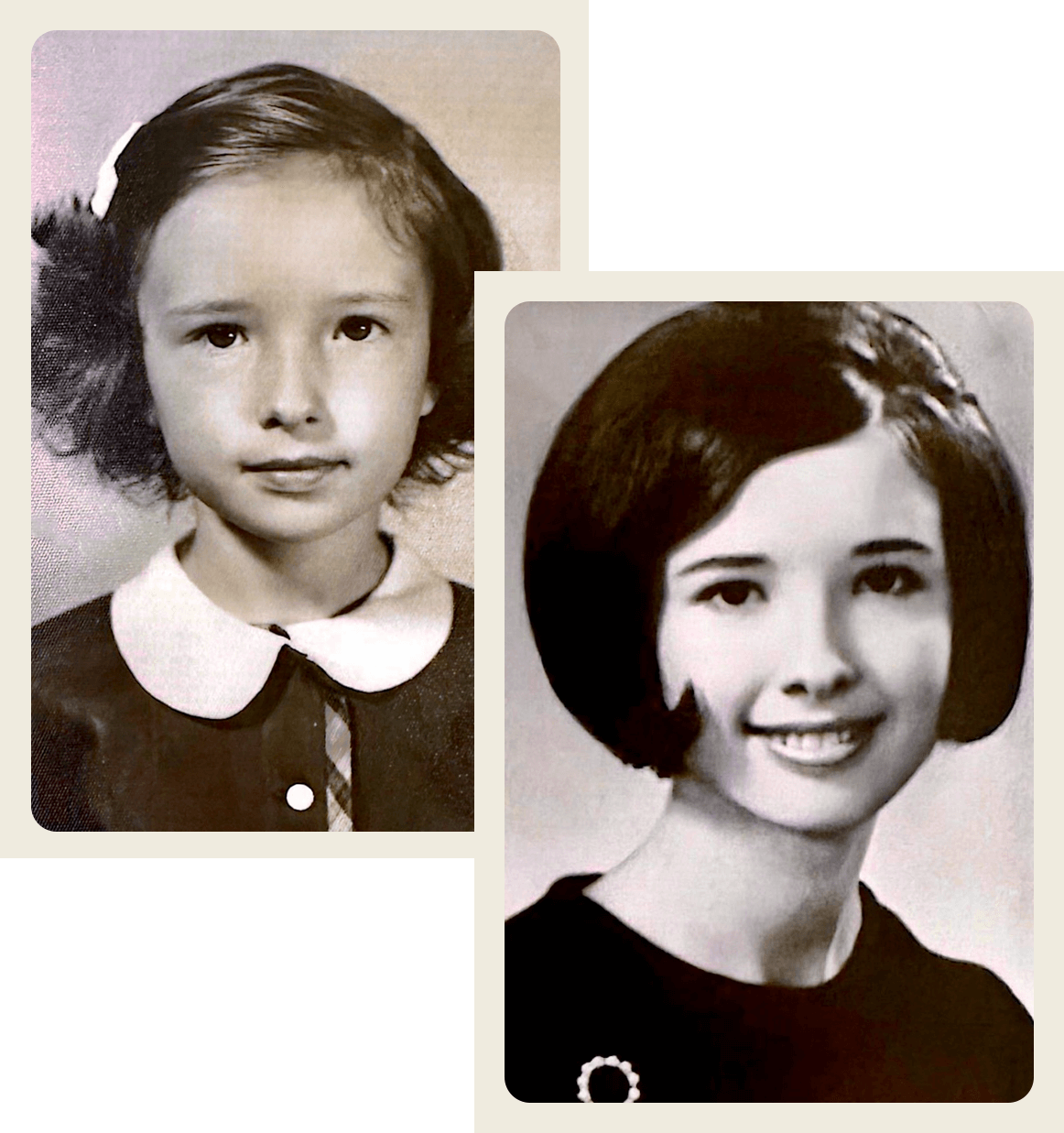 Susan’s first school photo, as a kindergartener in 1954, and her senior year of high school in 1967. Growing up, she took interest in all of the arts, from piano to dance, drawing and painting. In high school, Susan was active in Student Council, NHS, and Latin Club. She was also the Caldwell County Rodeo Queen!