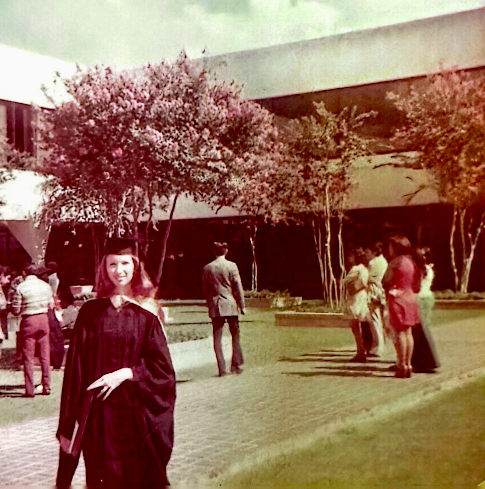 Susan on her graduation day from the University of Texas in 1970. She holds both a Bachelors and a Masters Degree in Fine Arts from her alma mater. Hook ‘Em!