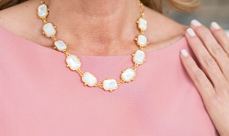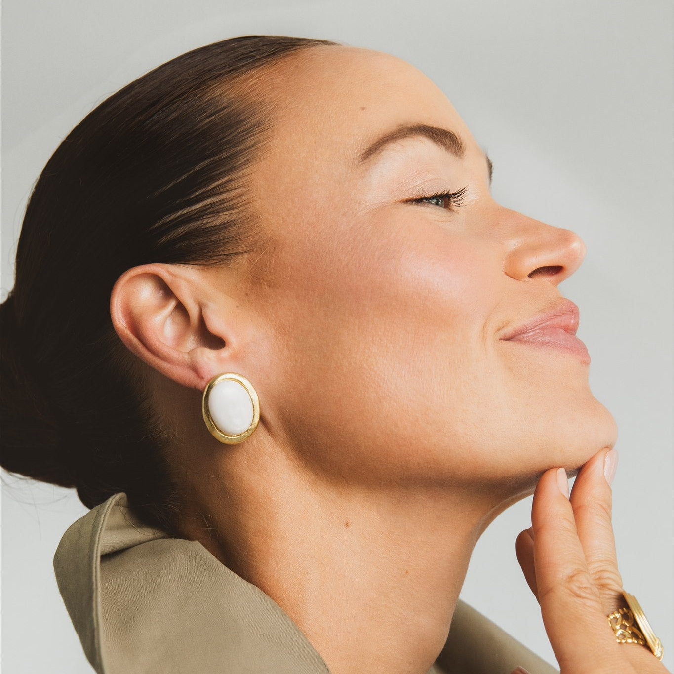 We designed it, you named it! Introducing Caroline, featuring richly-colored stone cabochons in a timeless oval setting. Pick your favorite hue from vibrant Turquoise, striking Black Onyx, shimmering White Agate, soft Green Jade, or deep Blue Lapis. Our newest pieces are impactful, yet easy to style and classic. Don't wait to add one (or two!) to your jewelry box!