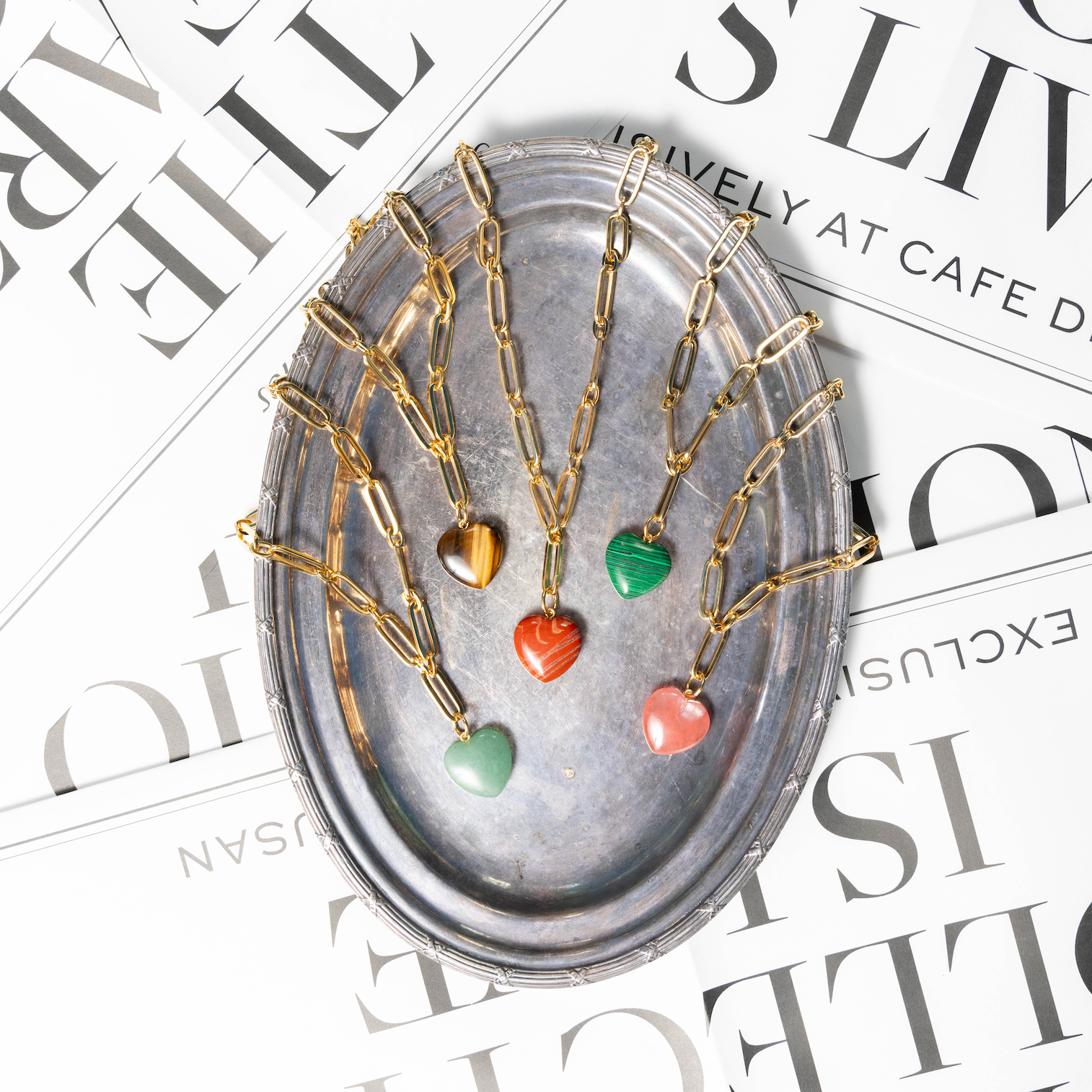 The Heart Collection is hot off the press! Fall in love with over 45 new pieces, featuring genuine stone hearts in a variety of hues ranging from soft green Jade to bold Blue Lapis. Like the beloved romance films from the Golden Age of Cinema and the stars that brought them to life, the Heart Collection is whimsical and timeless, with styles that will have you head over heels.